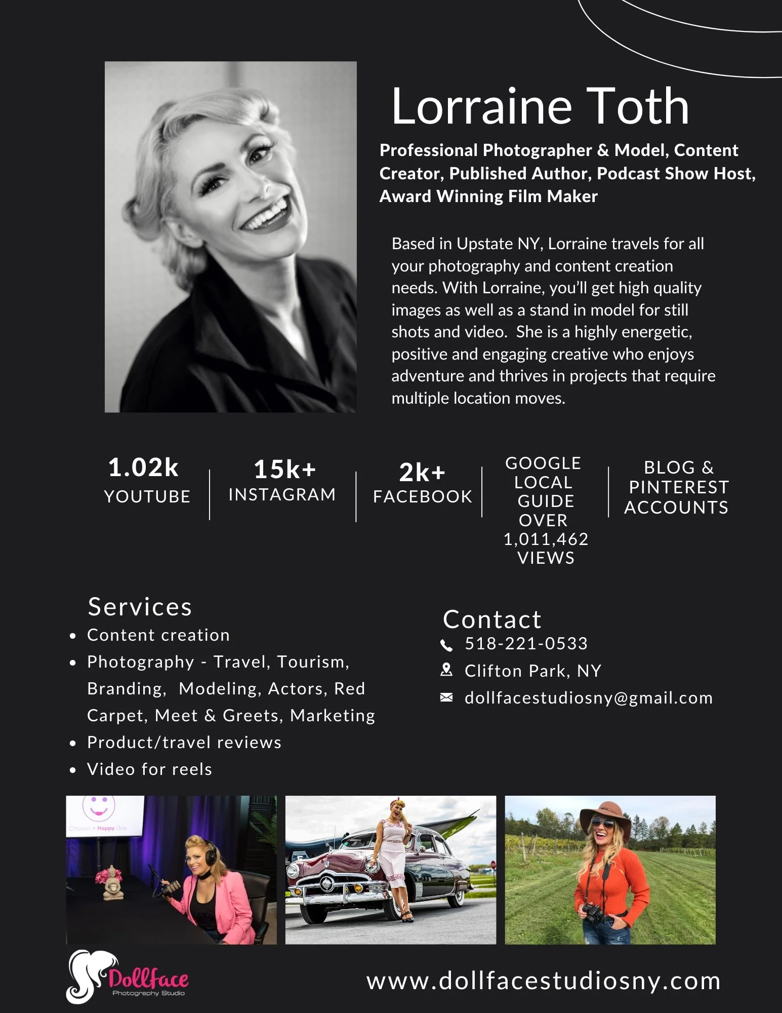 Lorraine has been a professional photographer for the last nineteen-years and has been internationally published in several magazines, photographed countless celebrities, photographed Red Carpet Events and even Broadway shows. Her photography has been shown in gallery exhibits as well. Her specialty is posing coaching and she strives to empower women and bring out their inner beauty with her pinup and boudoir photography photo sessions.